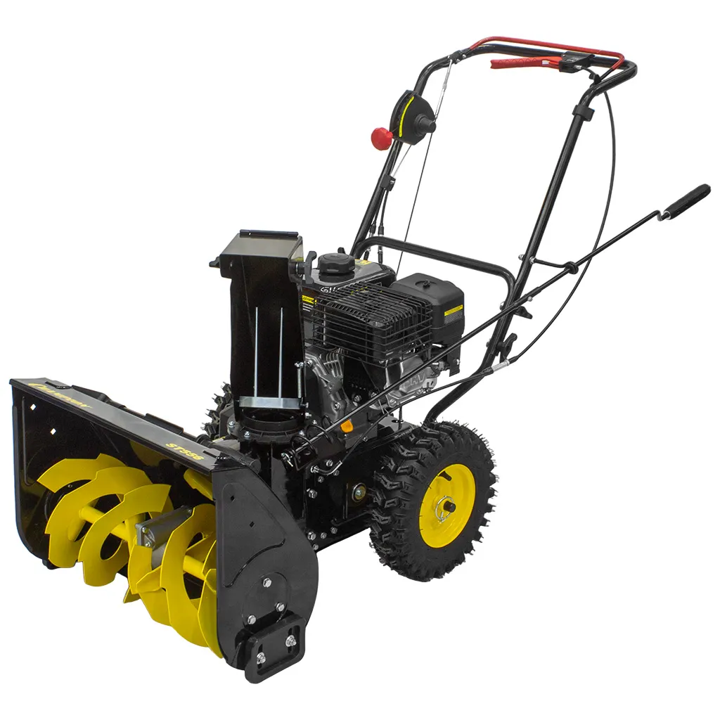 Бензиновый самоходный снегоочиститель Champion ST556, оснащённый четырёхтактным двигателем с мощностью в 5,5 л.с. — лучший зимний помощник. Он легко справится с очисткой дорожек у подъезда или частного дома. Аппарат рассчитан на уборку снежного покрова толщиной до 40 см при ширине захвата — 56 см. Рычаг переключения передач находится на рукоятке. Высота ковша регулируется с помощью специальных упоров. Зубчатый шнек измельчает даже слежавшийся снег. Жёлоб может вращаться в диапазоне от 0 до 180 градусов. Колёса обеспечивают достаточное сцепление с поверхностью. На верхней части ковша расположена лопатка для очистки жёлоба.