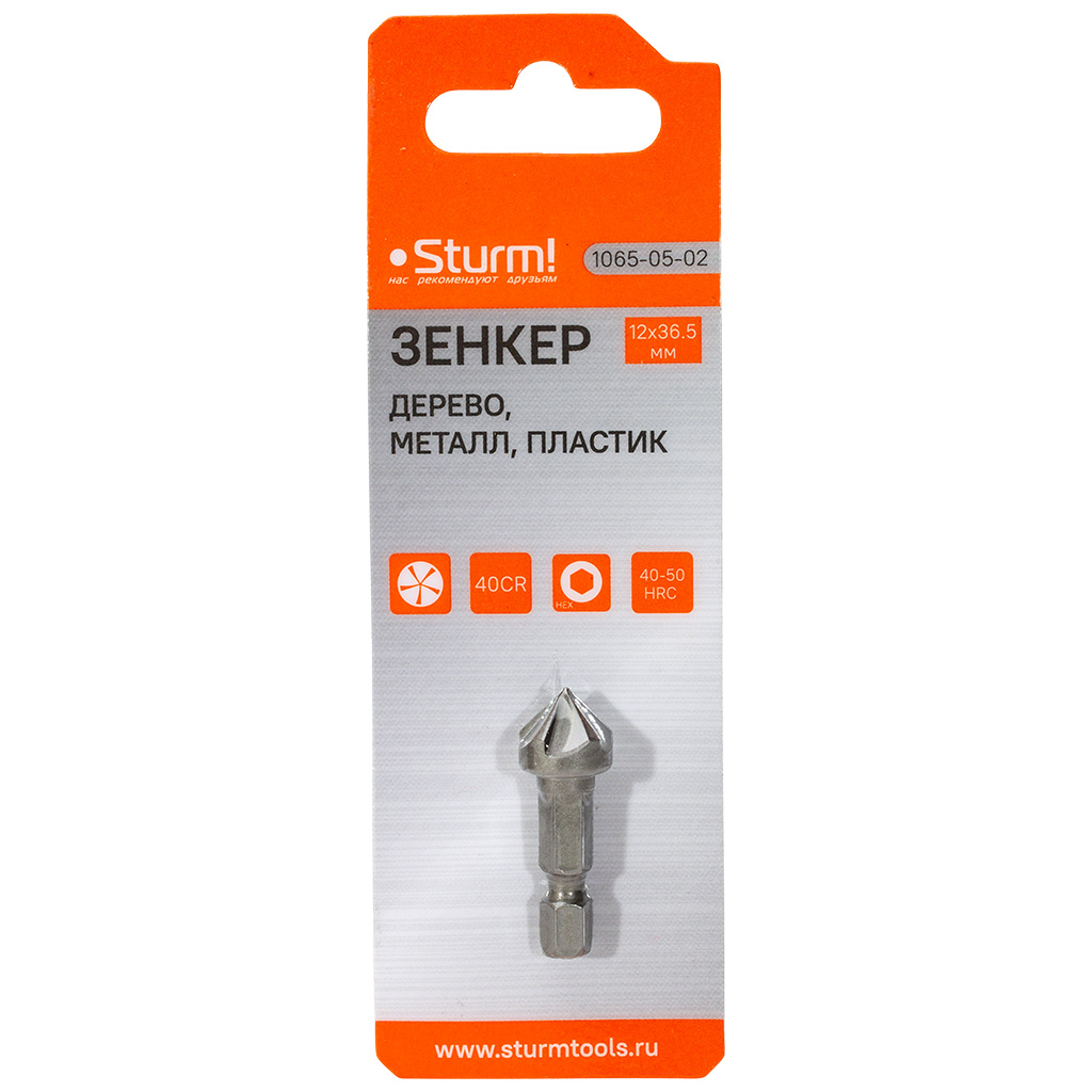 Зенкер Sturm! шестигранный хвостовик, по дереву, цветных металлов, 12х36,5мм
