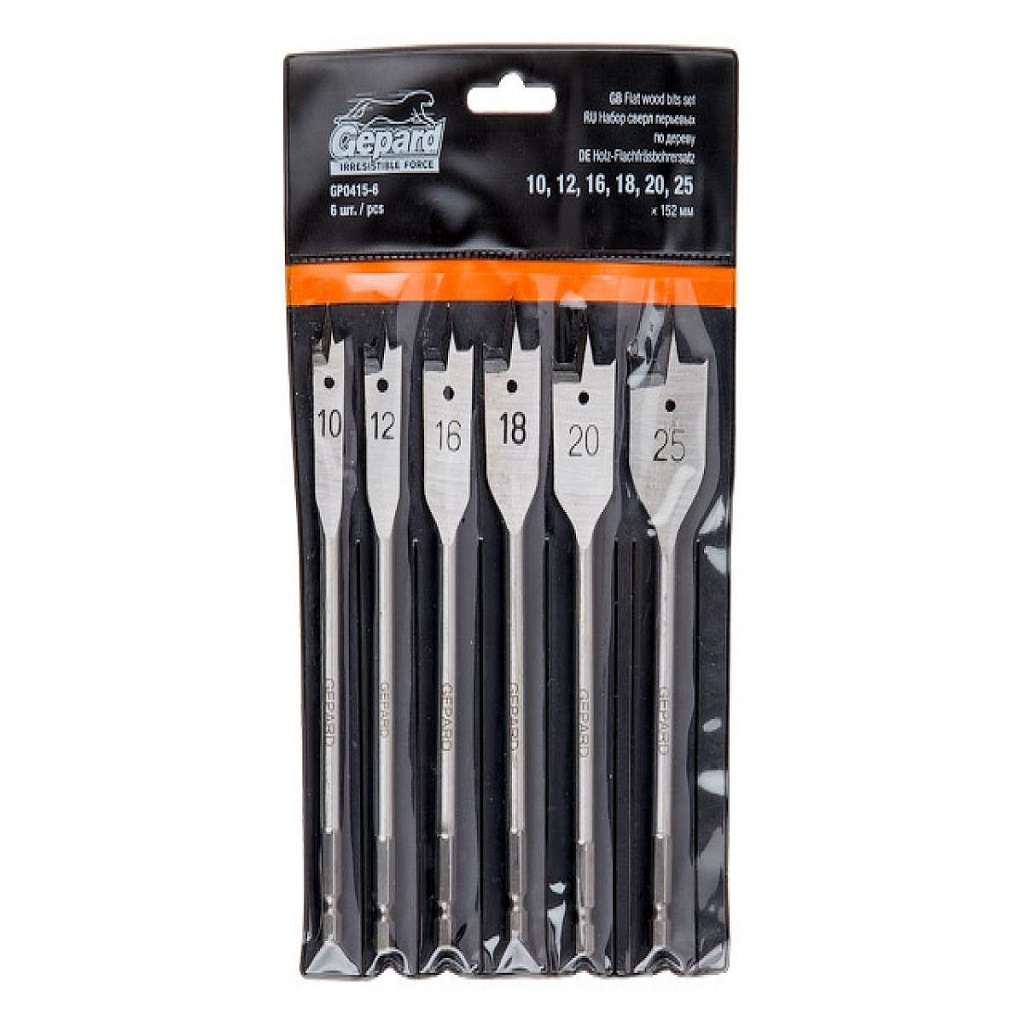 Набор сверл Gepard, по дереву, перовое, 10-12-16-18-20-25мм, 6шт упаковка