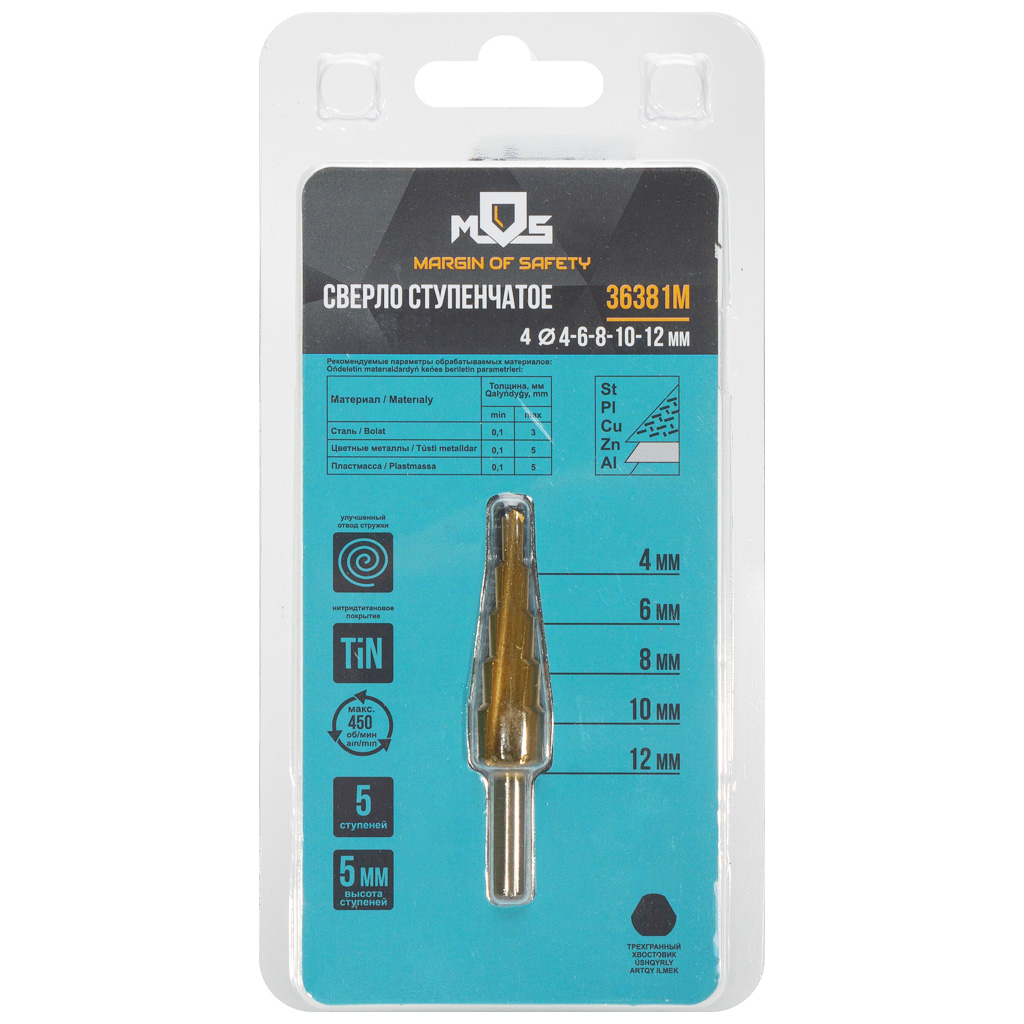 Сверло ступенчатое по металлу Mos HSS, 4-12мм