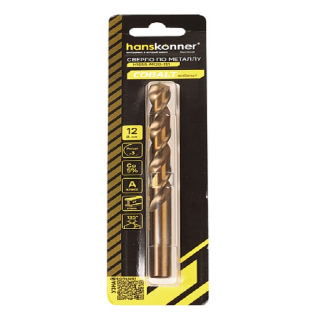 Сверло по металлу Hanskonner, с кобальтом, 12.0х151мм