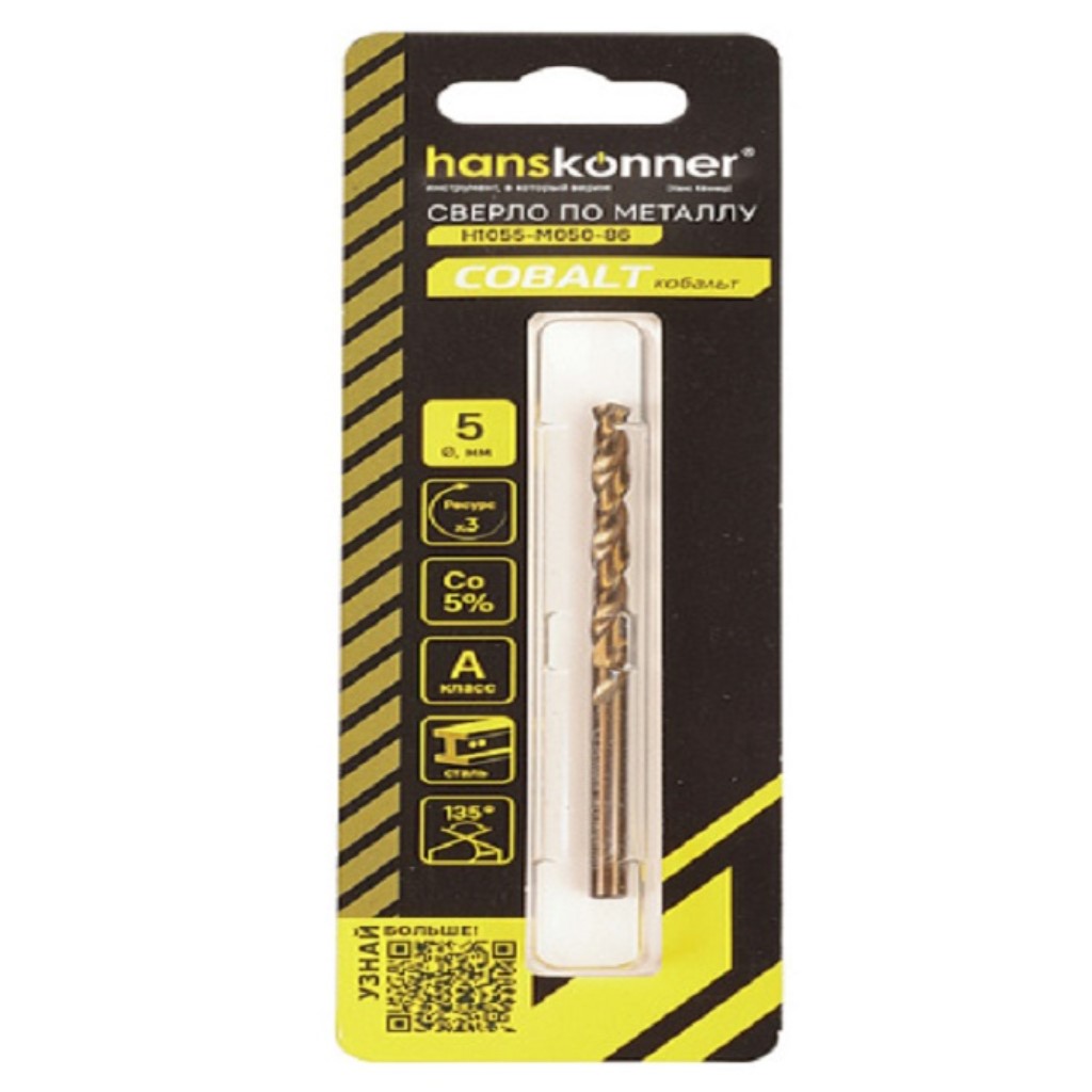 Сверло по металлу Hanskonner, с кобальтом, 5.0х86мм