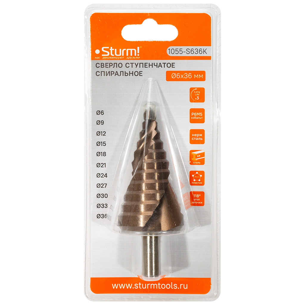 Сверло ступенчатое Sturm! P6M5+Cobalt, по металлу, 6-36мм
