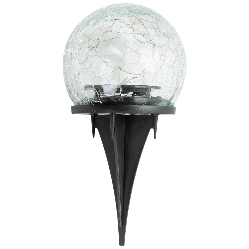 Садовый фонарь Шар кракелюр на солнечной батарее, создает уникальное, безопасное и комфортное ландшафтное освещение территории. Корпус изготовлен из металла и пластика, который защищает источник света от дождя и ветра. Устройство вкапывается в грунт на требуемую глубину с помощью держателя с острым концом, поэтому идеально подходит для подсветки садовых дорожек, лужаек, газонов, небольших групп деревьев и кустарников. Оснащен фотоэлементом автоматического включения/выключения светильника с наступлением темного/светлого времени суток.