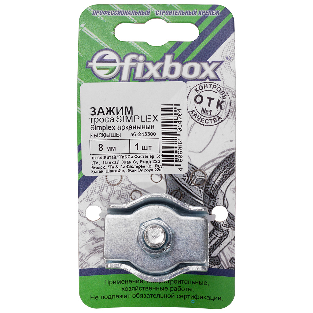 Зажим Fixbox Simplex, для стальных канатов, М 8, одинарный, 2шт/упак