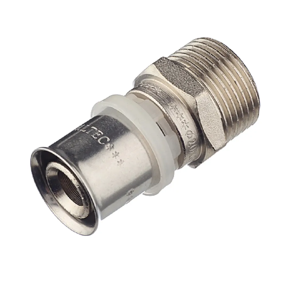 Муфта обжимная Valtec 16 х 1\2" с наружной резьбой предназначена для прямого резьбового соединения металлопластиковой трубы с другим элементом в системах отопления и водопроводов холодного, горячего в...