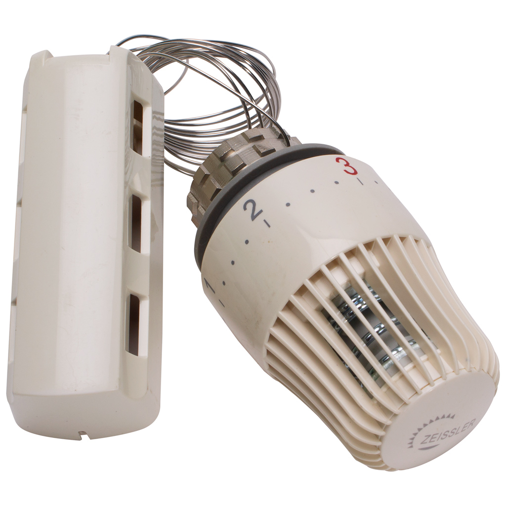 Термоголовка с выносным датчиком служит для регулирования и поддержания температуры окружающей среды в отдельном помещении и используется тогда, когда невозможна корректная работа термостатической головки со встроенным датчиком: при наличии преград, задерживающих тепло , при необходимости вертикальной установки терморегулятора, при установке в зоне сквозняка.