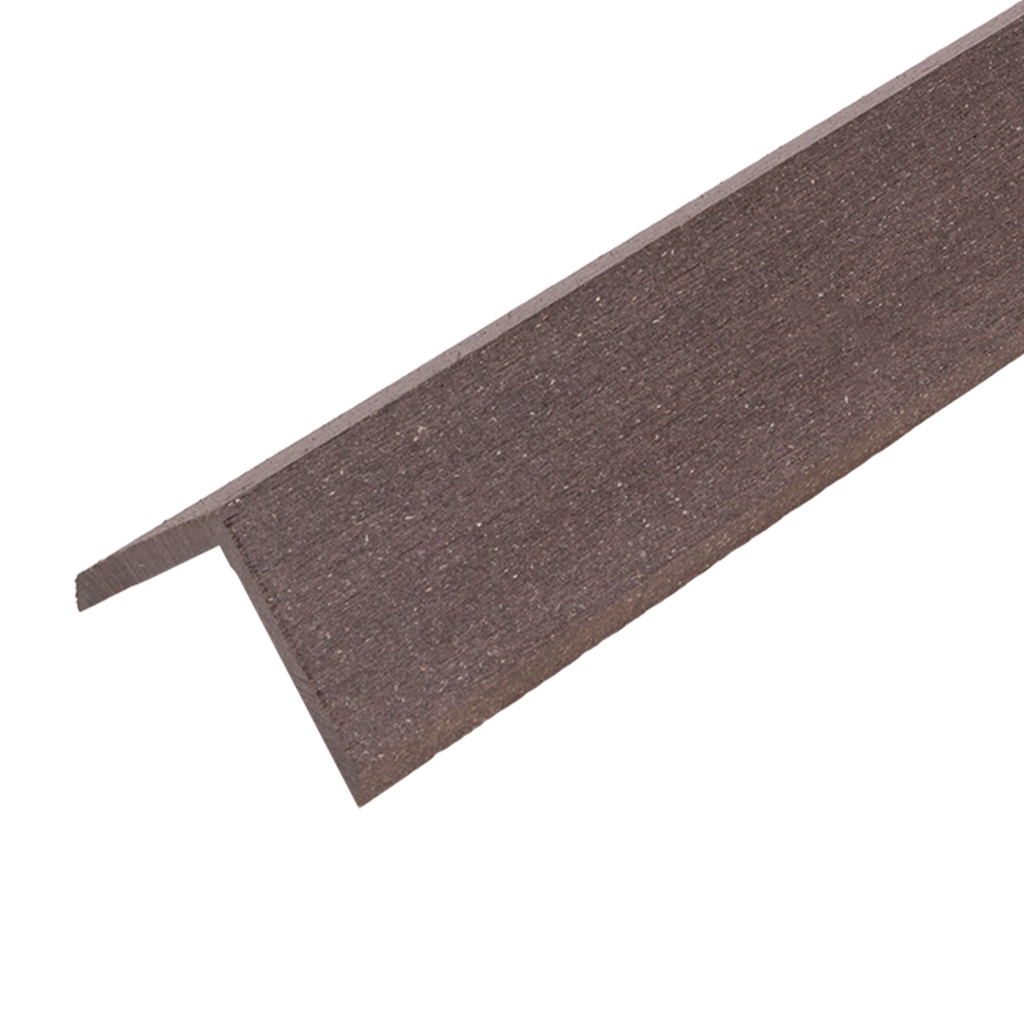Уголок из древесно-полимерного композита (ДПК) используется для оформления торцов настила из террасной доски.