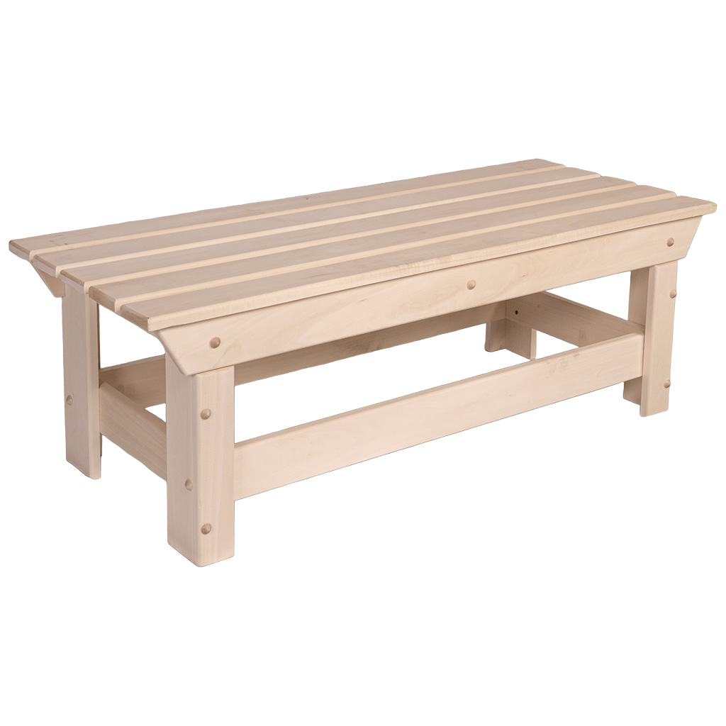 Скамья для банных помещений и саун, изготовлена из древесины липы, отличается устойчивостью к воздействию влаги и резким перепадам температуры. Материал обладает естественными свойствами защиты от грибка и плесени, не склонен к деформации и растрескиванию, не темнеет в течение долгого времени и имеет превосходные эстетические характеристики: ровная светлая текстура без сучков, приятная бархатистая поверхность. Изделие превосходно впишется в традиционный интерьер русской бани и будет гармонично сочетается с другими предметами деревянной мебели и утвари.