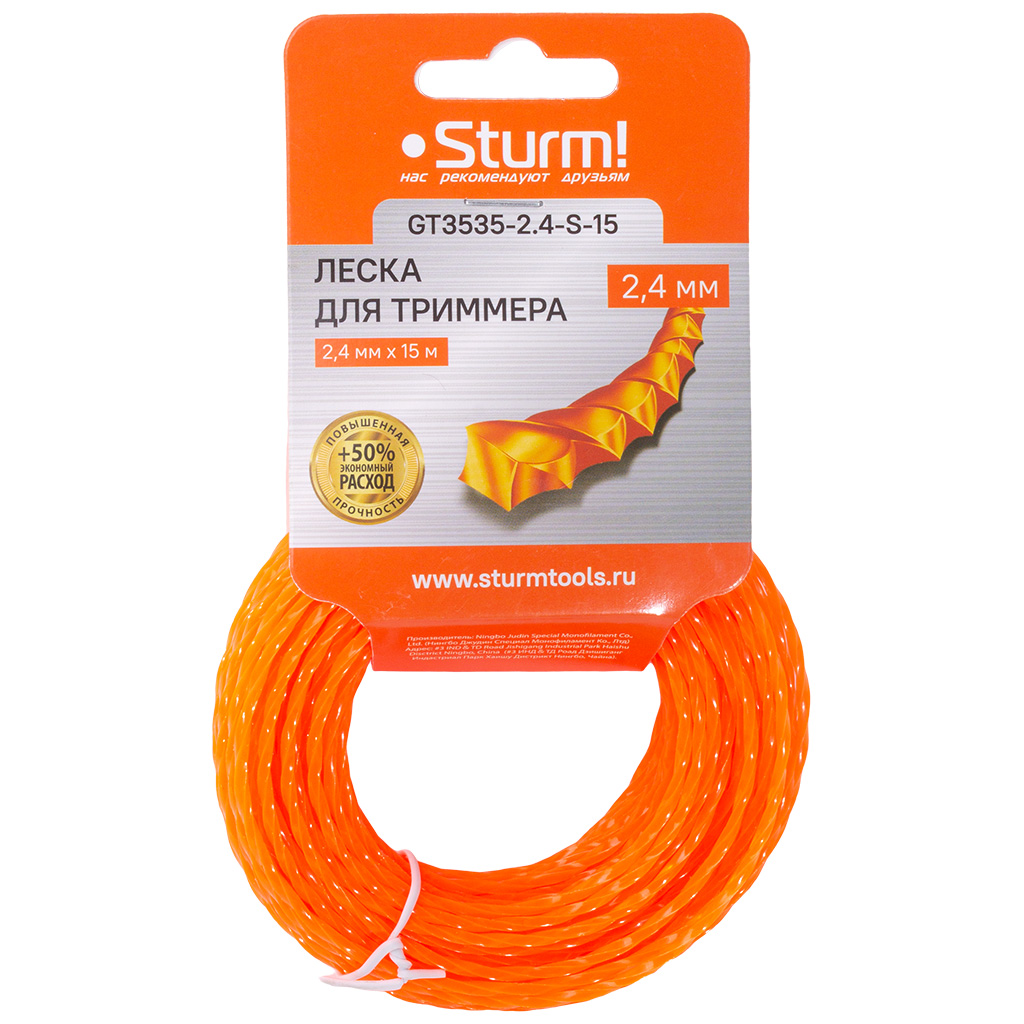 Леска для триммера Sturm!, 2.4 мм х 15м, крученый квадрат