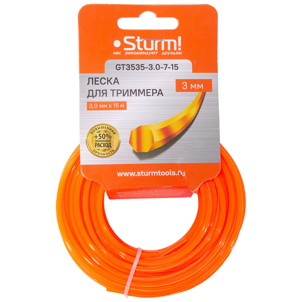 Леска для триммера Sturm!, 3.0 мм х 15м, семигранник