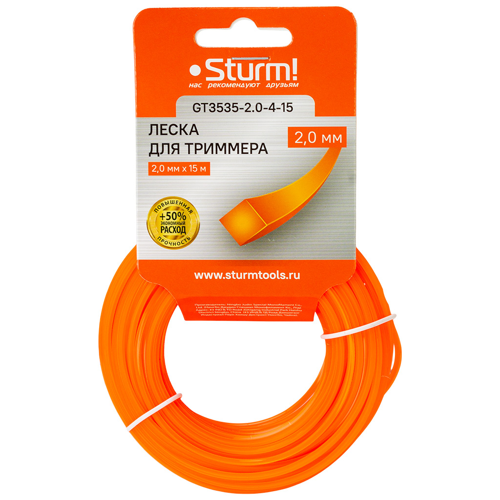 Леска для триммера Sturm!, 2.0 мм х 15м, квадрат