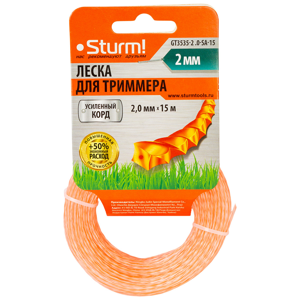 Леска для триммера Sturm!, 2.0 мм х 15м, крученый квадрат