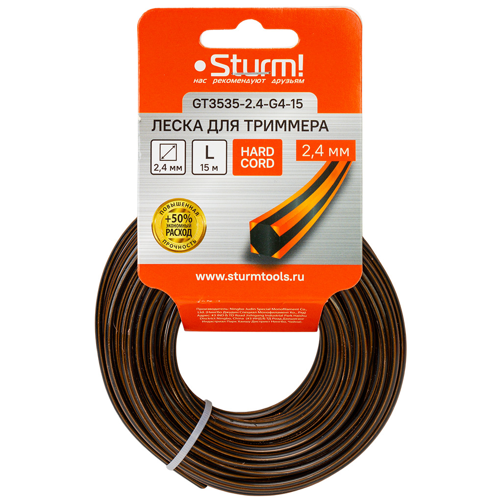 Леска для триммера Sturm!, 2.4мм х 15м, усиленный квадрат
