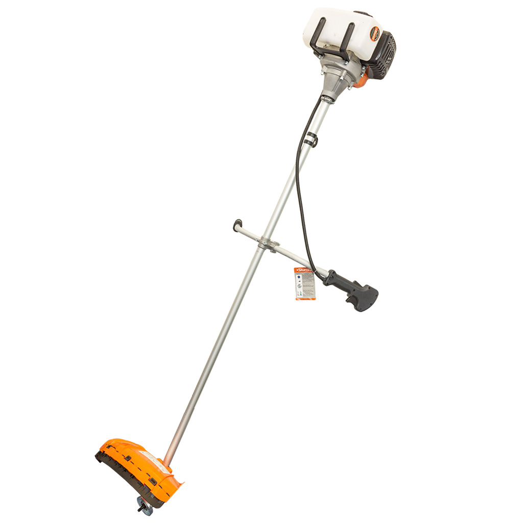 Универсальный защитный кожух подходит для использования с ножом-косой, которая облегчает срезание жестких зарослей, или кордовой головкой для травы. Заменить оснастку при этом можно просто и безопасно. Система легкого старта отвечает за бесперебойный запуск мотора без чрезмерного приложения усилий. Праймер подкачки топлива облегчает включение двигателя в сложных условиях. Наличие возвратного механизма стартера постоянно поддерживает инструмент в готовом к работе состоянии. Это обусловлено тем, что он автоматически приводит его в стартовое положение для быстрого последующего запуска.