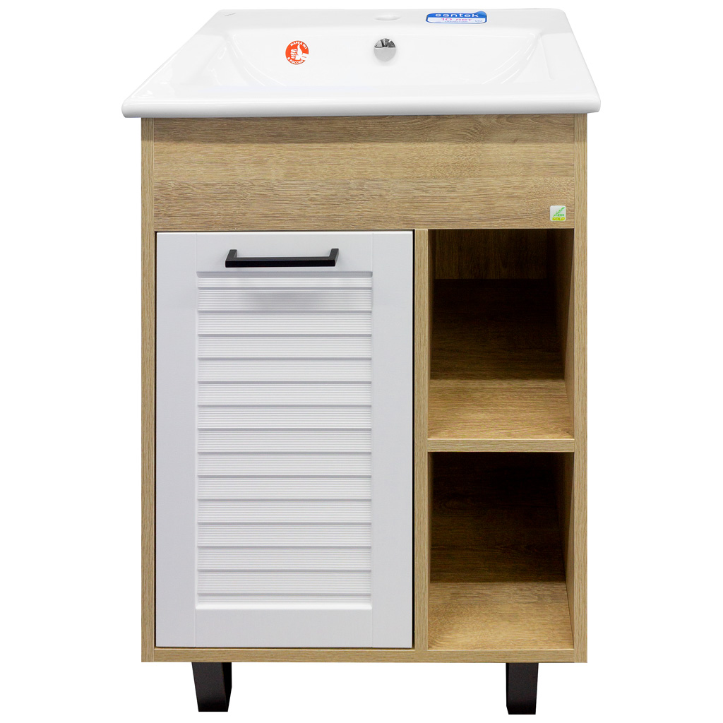 Тумба Olsen 60 с умывальником Элина 60, белое дерево/дуб баррик