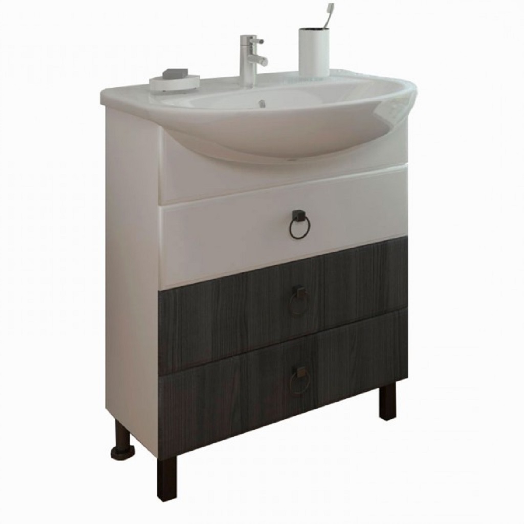 Тумба Arcada 65 с умывальником Стелла 65, белый глянец/серая лиственница