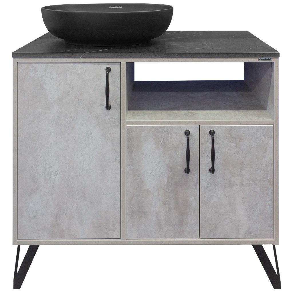 Тумба напольная Queens 90 с умывальником А433 ВМ, бетон/черный мрамор