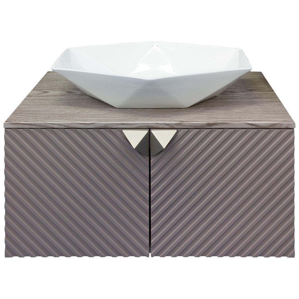 Тумба подвесная Андорра 85 с умывальником Poligono, кашемир, серый/дуб какао