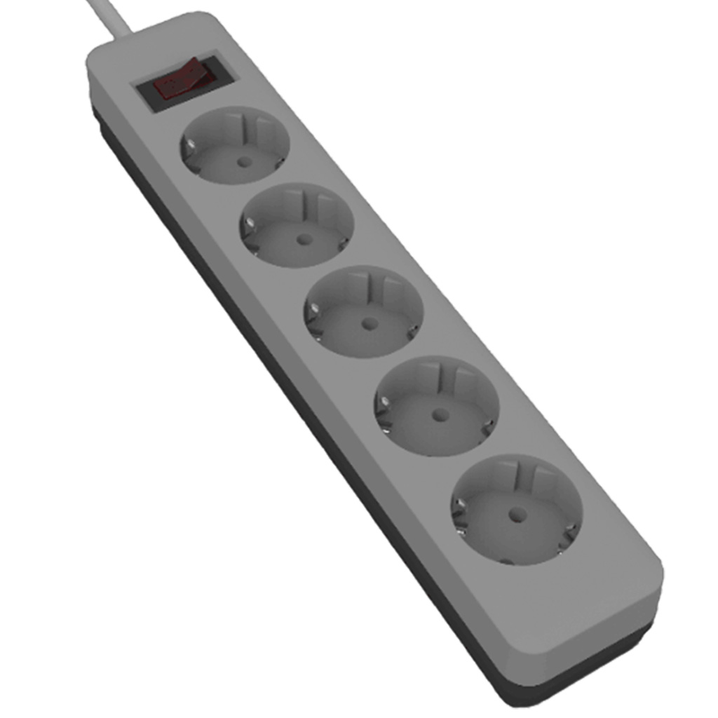 Удлинитель с сетевым фильтром Leek, 5-местный, 5м, ПВС 3х0,75, с заземлением, черный/серый