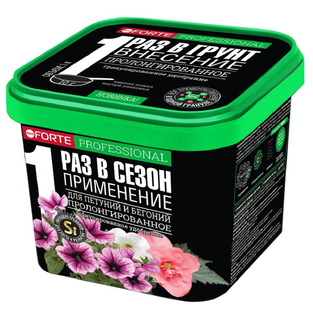Удобрение Bona forte, для петуний и бегоний, гранулы, ведро 1л