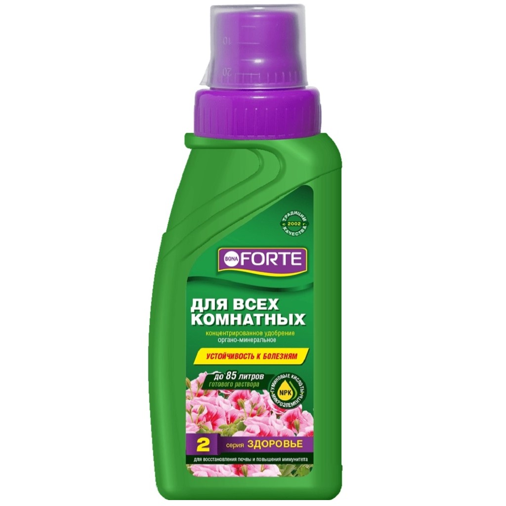 Удобрение Bona forte, стимулирует рост листьев, восстанавливает корневую систему, повышает устойчивость к неблагоприятным условиям и усиливает процесс фотосинтеза. Применяется для всех видов комнатных растений, включая декоративно-лиственные, цветущие, а также специфические культуры, такие как пальмы и фикусы. Удобрение включает гуматы, которые являются природными стимуляторами, восстанавливают почву и иммунитет растений, а также обеспечивают постепенное высвобождение питательных веществ. В состав могут входить витамины группы B (B1, B6, B12), а также витамин С и PP, способствующие здоровью растений. Жидкая форма удобрения обеспечивает быстрое и полное усвоение растениями, как через корни, так и через листья при опрыскивании.