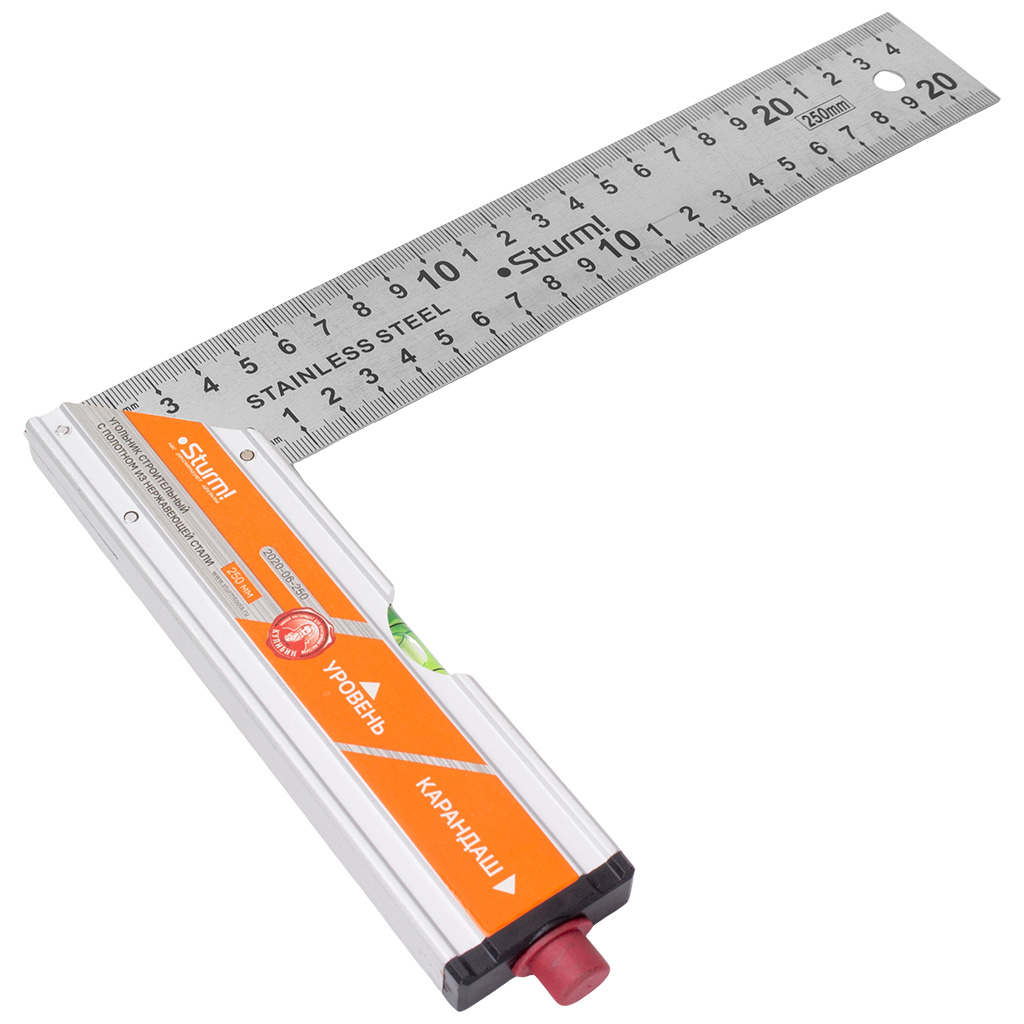 Угольник Sturm! с уровнем и карандашом, стальной, 250мм