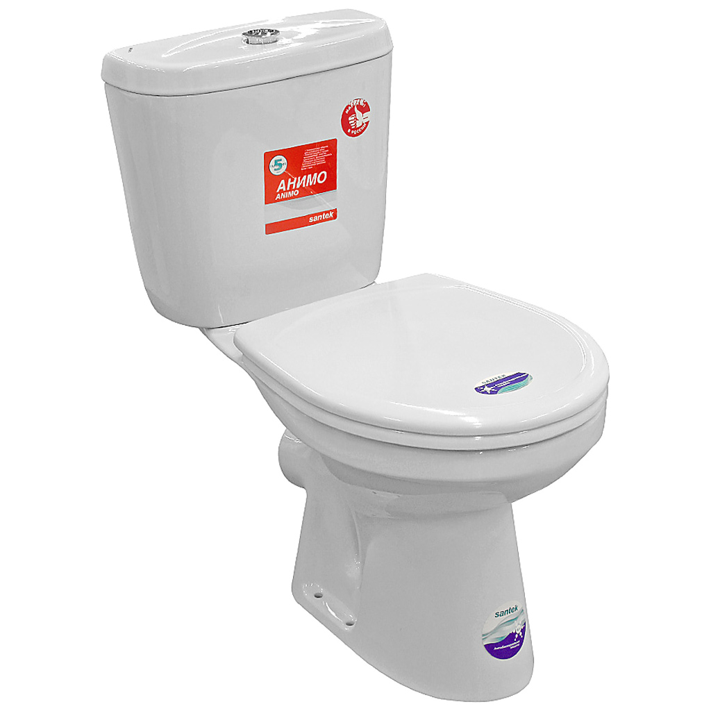 Унитаз-компакт Santek Анимо, двухрежимная арматура, нижняя подводка, выпуск косой