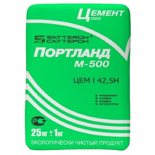 Цемент портланд Satteron ЦЕМ I, М-500, Д-0, серый, 25кг, 80шт/уп.