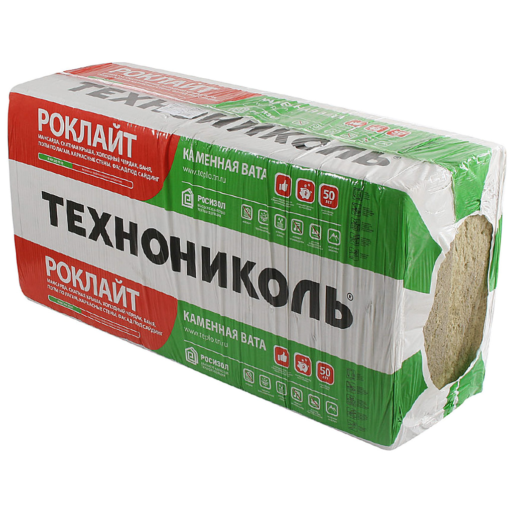 Утеплитель в плитах Технониколь Роклайт, 33-35кг/м3, 1200х600х50мм, 5.76м2, 8шт/уп.