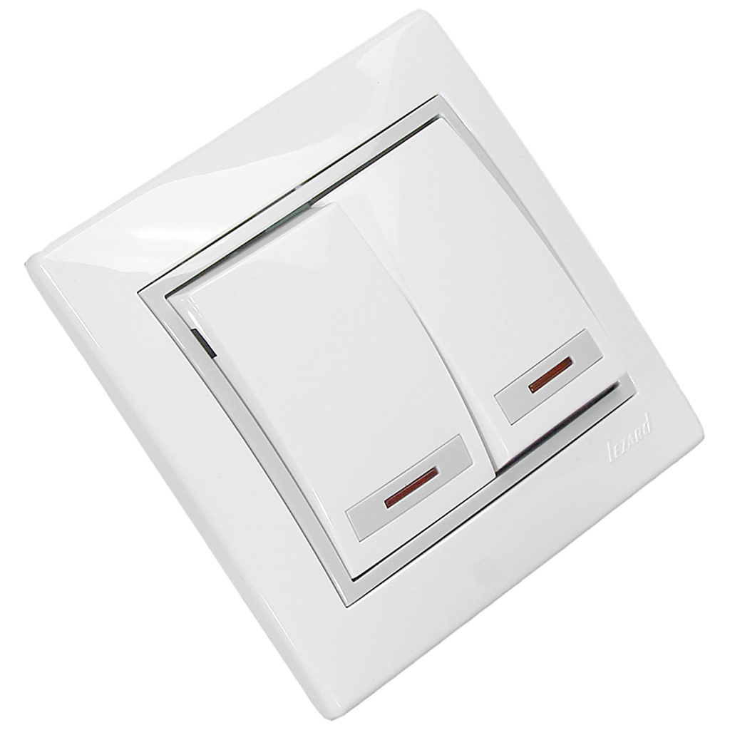 Выключатель скрытой проводки Lezard Мира, 2-клавишный, 10А, с индикатором, белый с серой вставкой