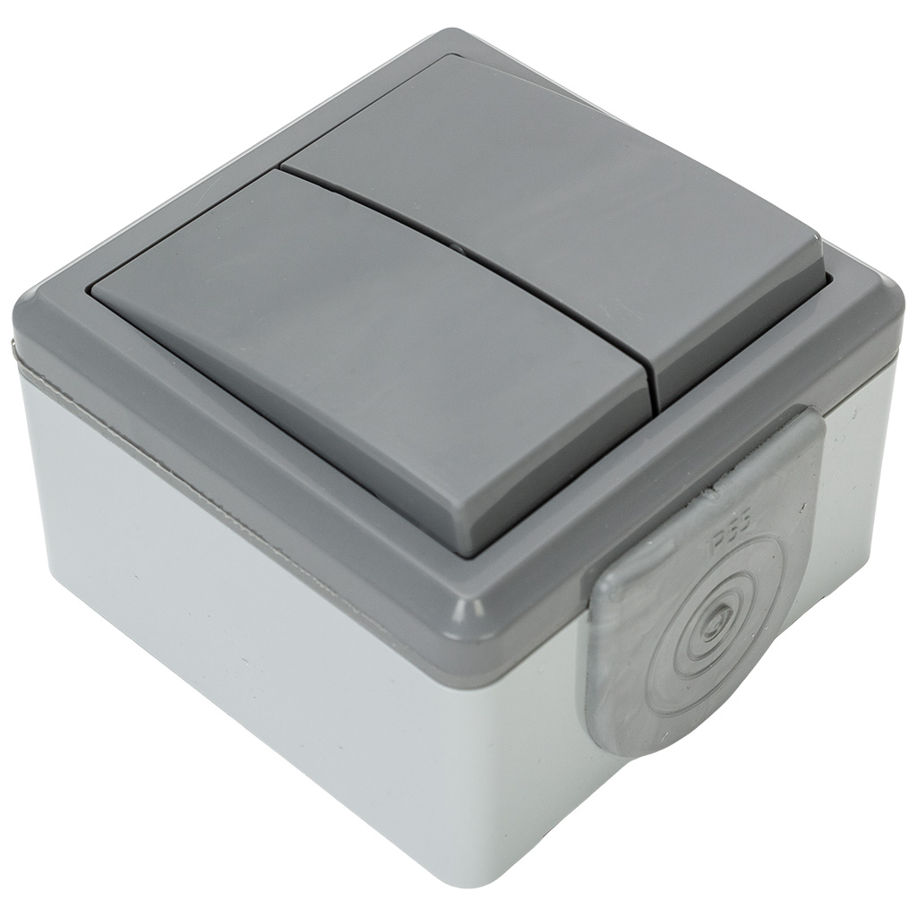Выключатель открытой проводки Bylectrica Пралеска Аква, 2-клавишный, 6А, IP55, серый