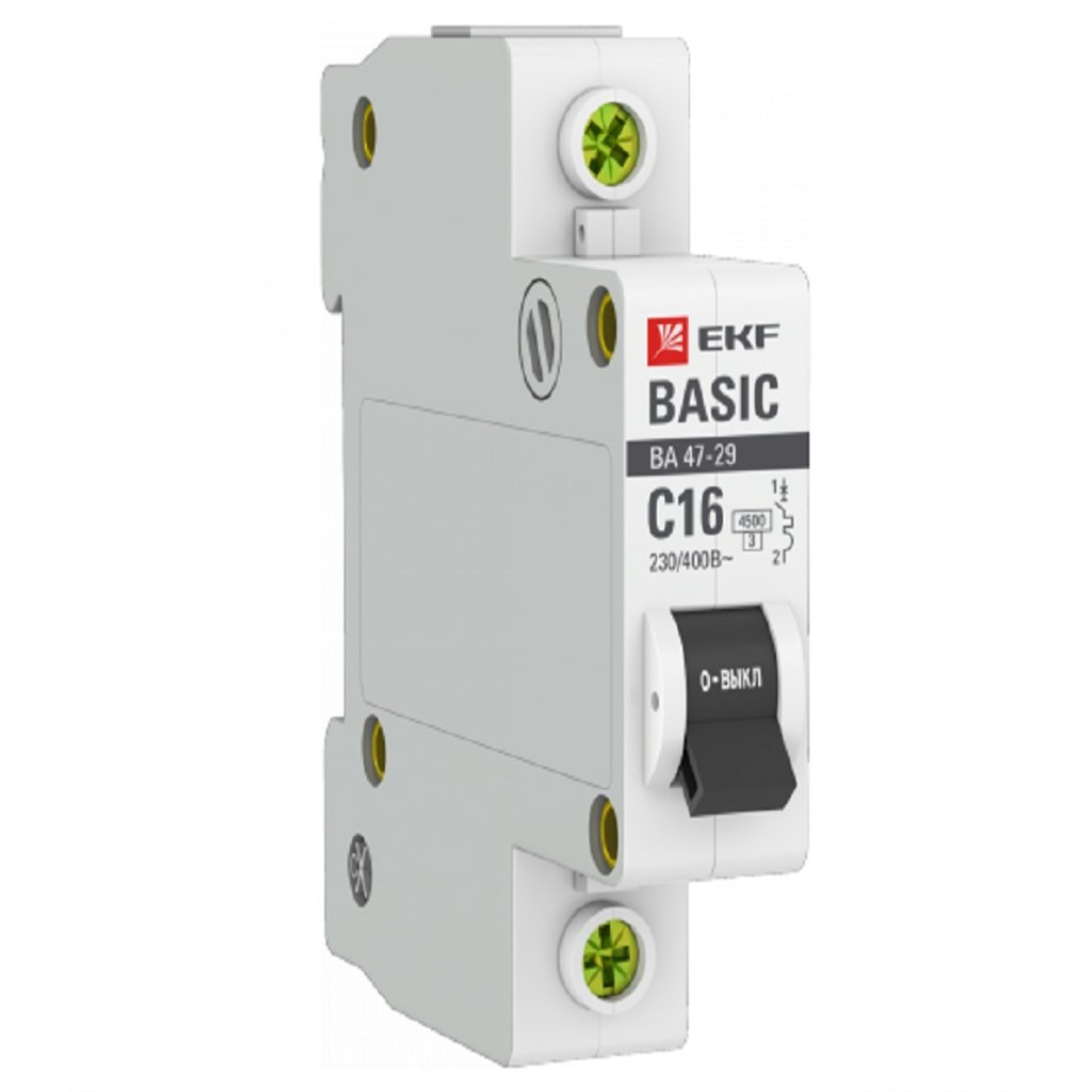 Выключатель автоматический ВА47-29 EKF, 1 полюсный, 16А С 4.5кА