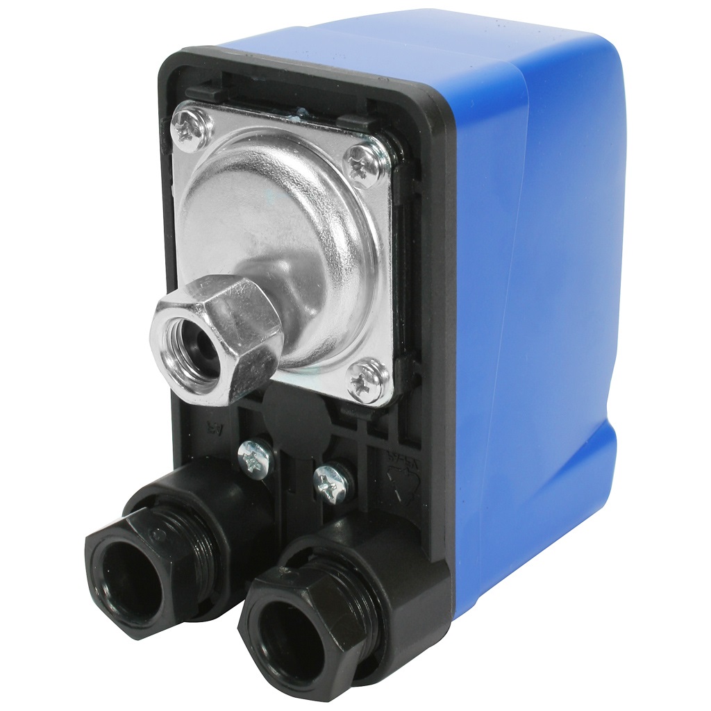 Устанавливается в напорной магистрали, размыкает и замыкает цепь подачи электричества на насос в зависимости от величины давления воды в точке подключения.