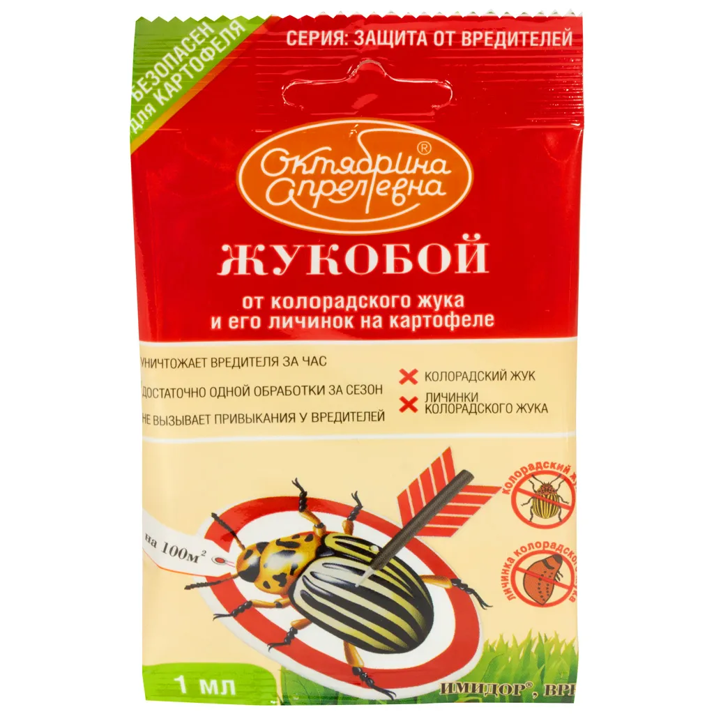 Жукобой от колорадского жука, инсектицид системного действия предназначен для применения в период вегетации картофеля, тепличных томатов и огурцов, цветочных культур, в том числе горшечных от комплекса вредителей. Действие препарата не зависит от погоды. Благодаря длительному защитному действию за весь летний сезон требуется только одна обработка.