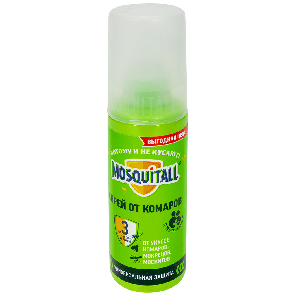 Спрей Mosquitall (Москитол), является надежным средством защиты для всей семьи от укусов кровососущих насекомых на открытом воздухе. Эффективно отпугивает комаров, мокрецов, мошек, москитов и слепней.