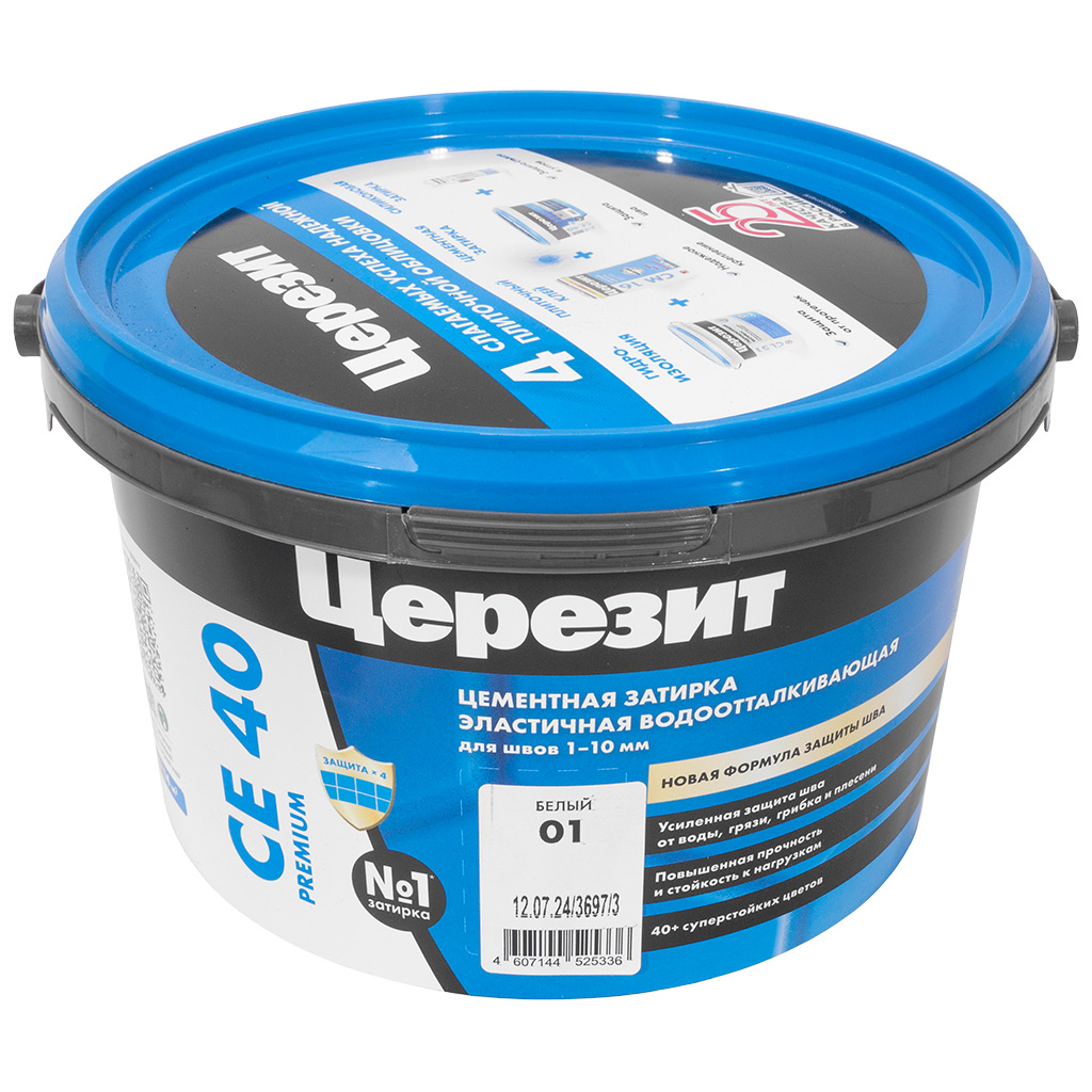 Затирка для швов Ceresit СЕ40, белая (01), водоотталкивающая, 2кг