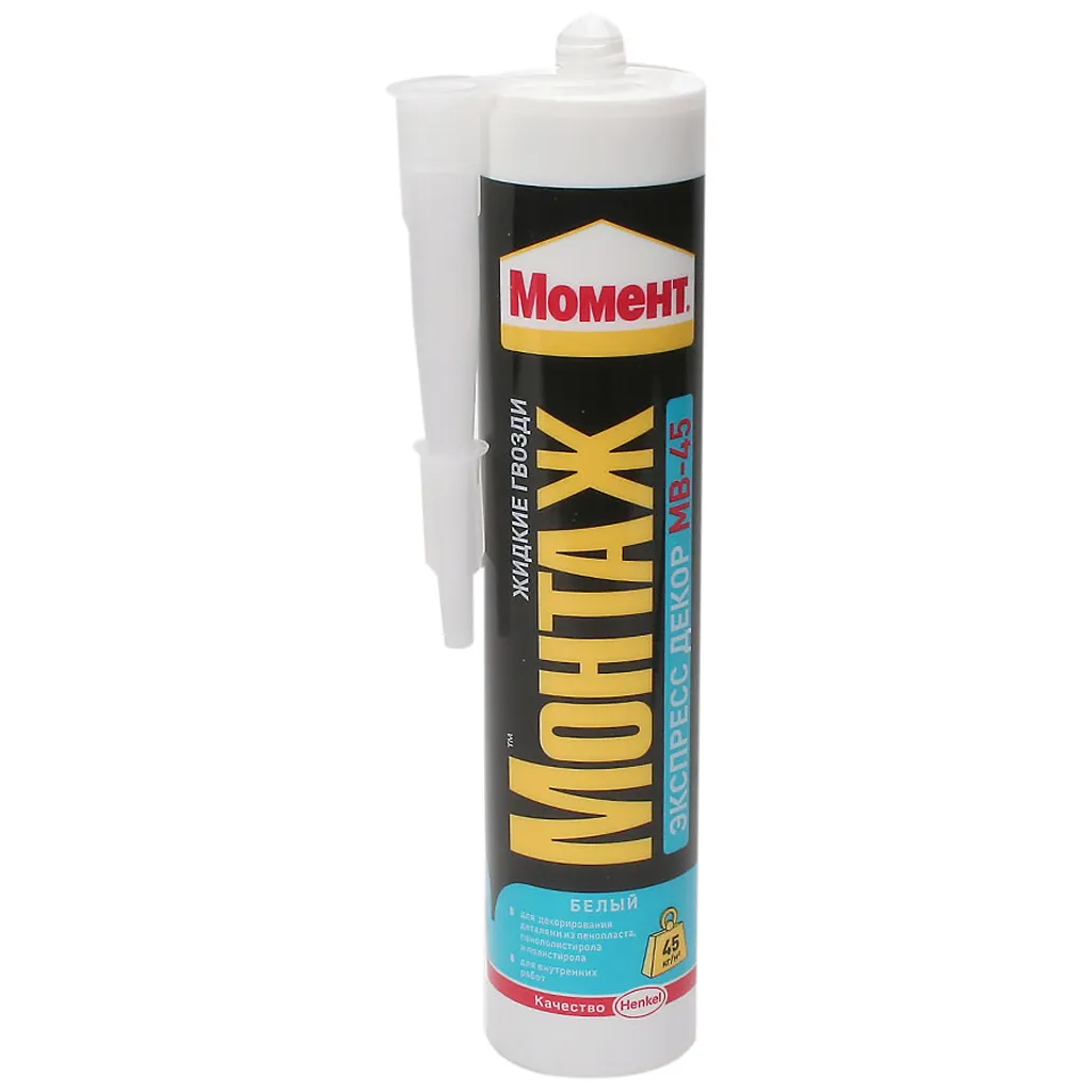 Жидкие гвозди Момент Монтаж Экспресс Декор МВ-45 - это универсальный клей на основе акриловой водной дисперсии.