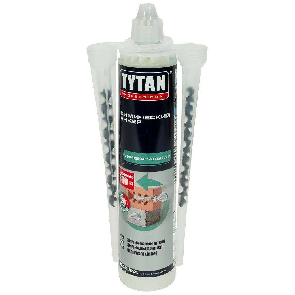 Быстросохнущий двухкомпонентный химический анкер Tytan, предназначен для крепежа различных конструкций в твердых основаниях: бетоне, натуральном и искусственном камне, пустотелом кирпиче, газобетоне. Для надежного соединения в пустотелых материалах, где механическая фиксация почти бесполезна из-за низкой прочности поверхности, химический анкер используется вместе с втулками, имеющими специальные отверстия и обеспечивающими хорошую фиксацию.
